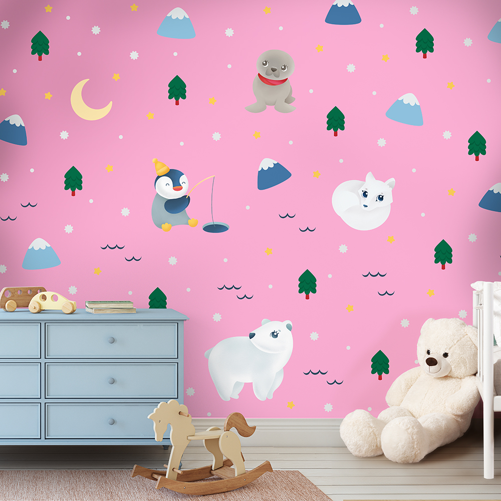 Transforme o quarto em um espaço mágico com o adesivo de parede infantil Animais Do Ártico da MeuNominho.