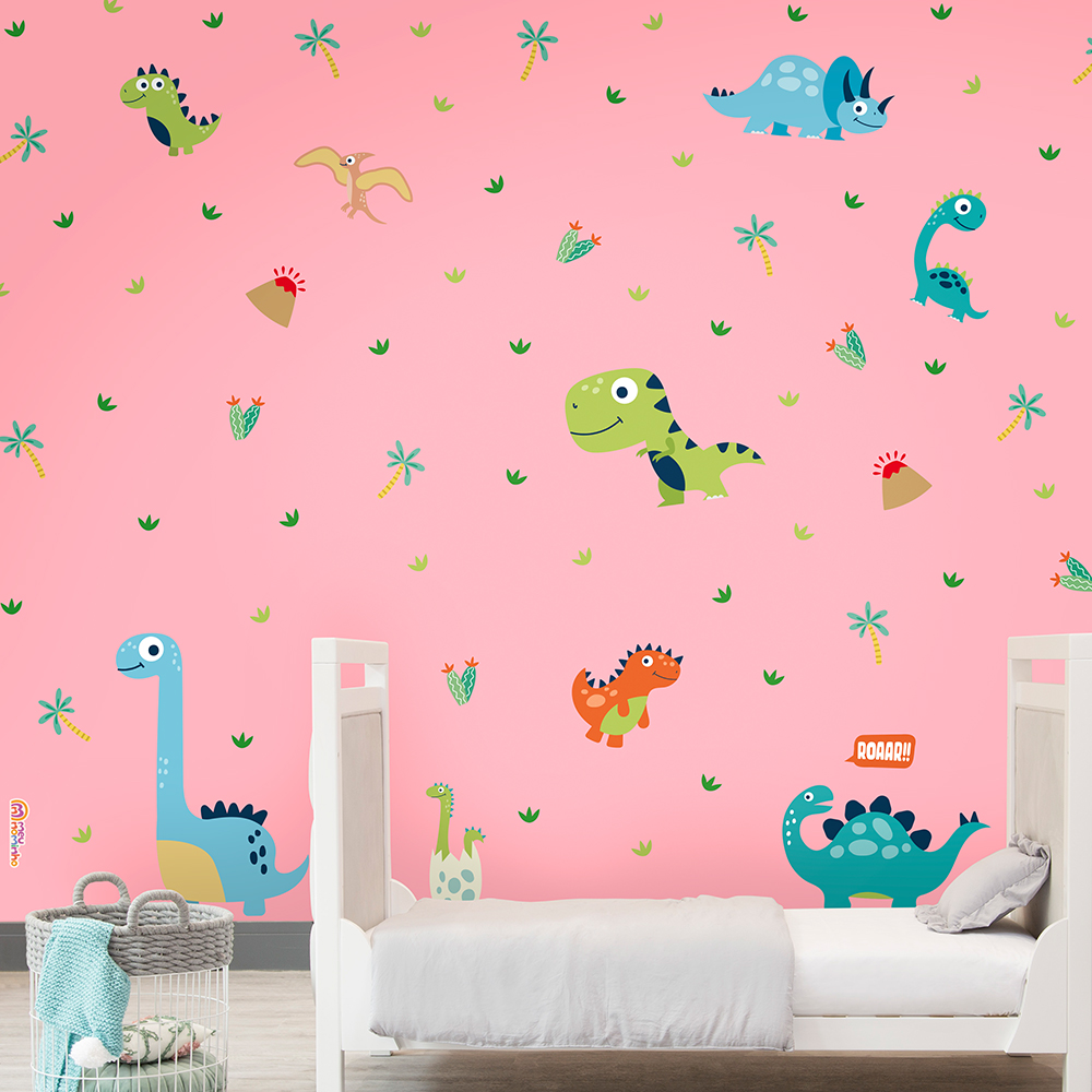 Transforme as paredes sem graça em um ambiente lúdico e cheio de aventuras com o adesivo de parede infantil dinossauros da MeuNominho.