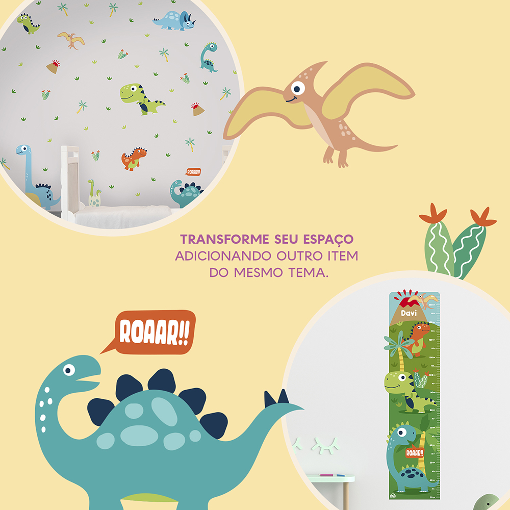? Fica a dica: complemente a decoração com a nossa Régua de Crescimento Infantil Dinossauros e crie um espaço único, onde seu filho pode acompanhar seu crescimento enquanto se diverte no universo dos dinos.