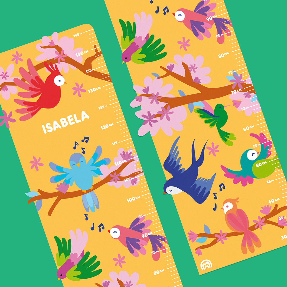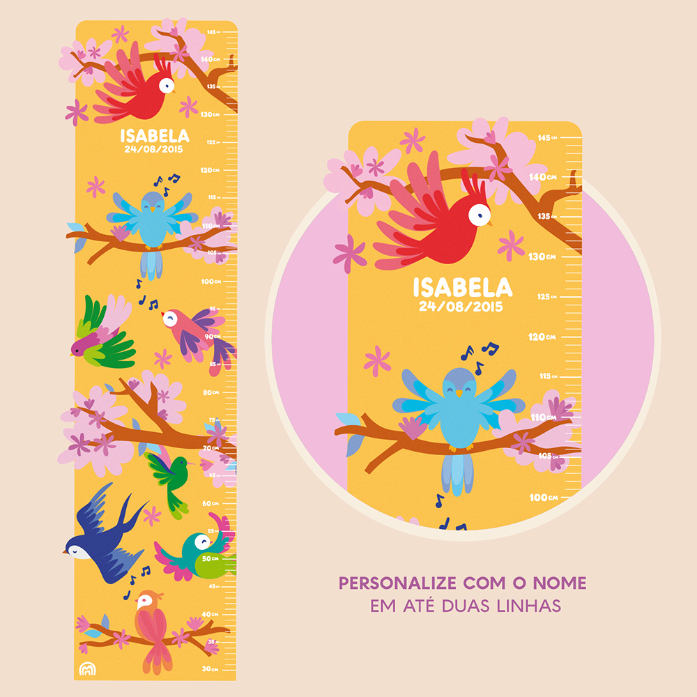 Régua de Crescimento Adesiva - Pássaros